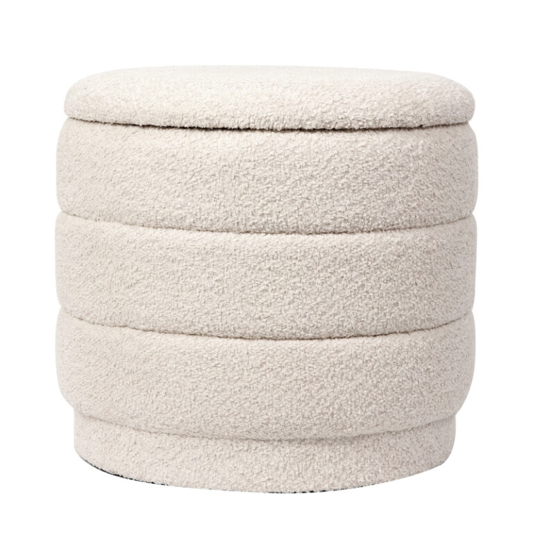 Σκαμπό-μπαούλο Bettia pakoworld μπουκλέ ιβουάρ Φ41×38.5εκ
