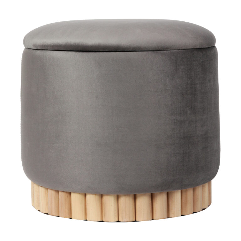 Σκαμπό-μπαούλο Terina pakoworld βελούδο γκρι Φ46×42εκ