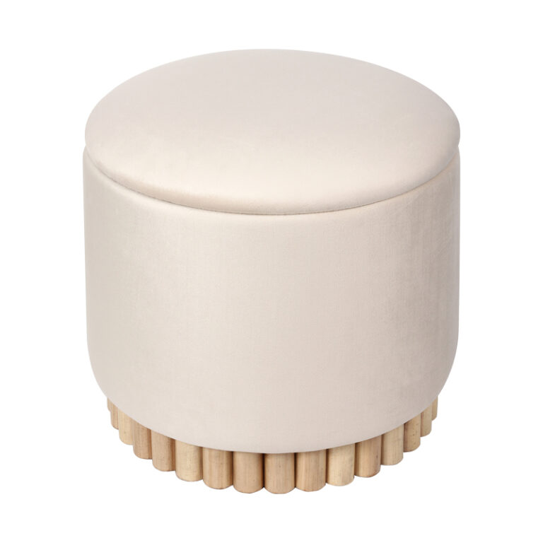 Σκαμπό-μπαούλο Terina pakoworld βελούδο κρεμ Φ46×42εκ