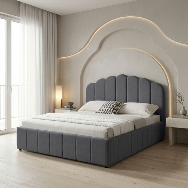 Κρεβάτι Arcuate pakoworld μπουκλέ υφασμα ανθρακί με συρόμενο 90×200εκ