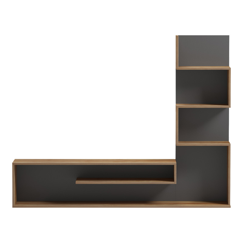 Έπιπλο τηλεόρασης με βιβλιοθήκη Cazenda pakoworld σε oak με ανθρακί απόχρωση 160x29x126εκ