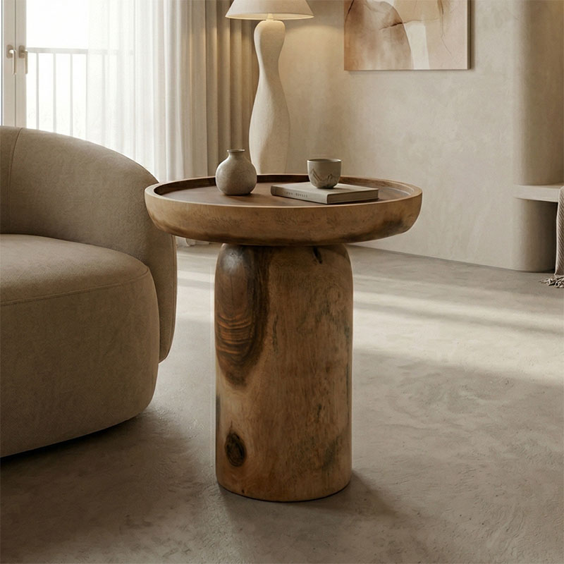 Βοηθητικό τραπέζι Tobola pakoworld suar ξύλο σε φυσική απόχρωση Φ50×55εκ