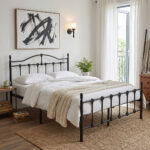 • Κατασκευασμένο από υψηλής ποιότητας μέταλλο με ανθεκτικό μαύρο ματ φινίρισμα, αυτό το κρεβάτι είναι σχεδιασμένο για μακροχρόνια χρήση και εύκολη συντήρηση.
