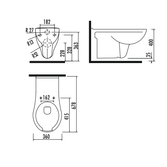 Η έξοδος της αποχέτευσης είναι στην πίσω πλευρά της λεκάνης, κάτι που σημαίνει ότι συνδέεται με σωληνώσεις που βρίσκονται στον τοίχο.