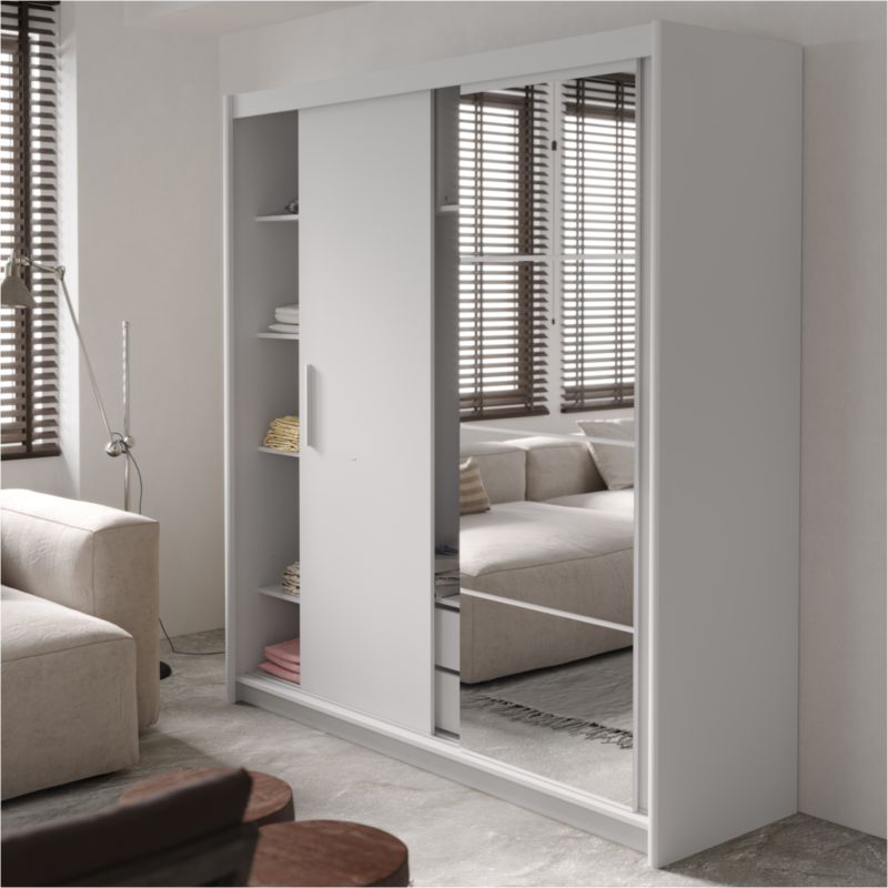 Ντουλάπα ρούχων Elodie pakoworld τρίφυλλη καθρέπτης συρόμενη λευκό 200x61x216εκ