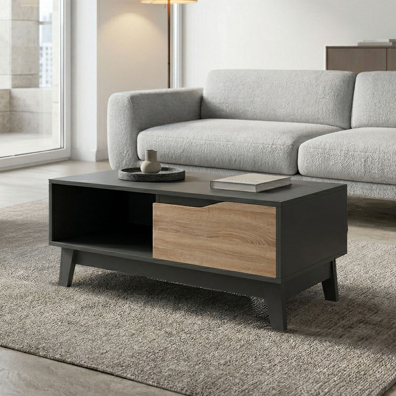 Τραπέζι σαλονιού Judas pakoworld ανθρακί-sonoma 90x45x38.5εκ