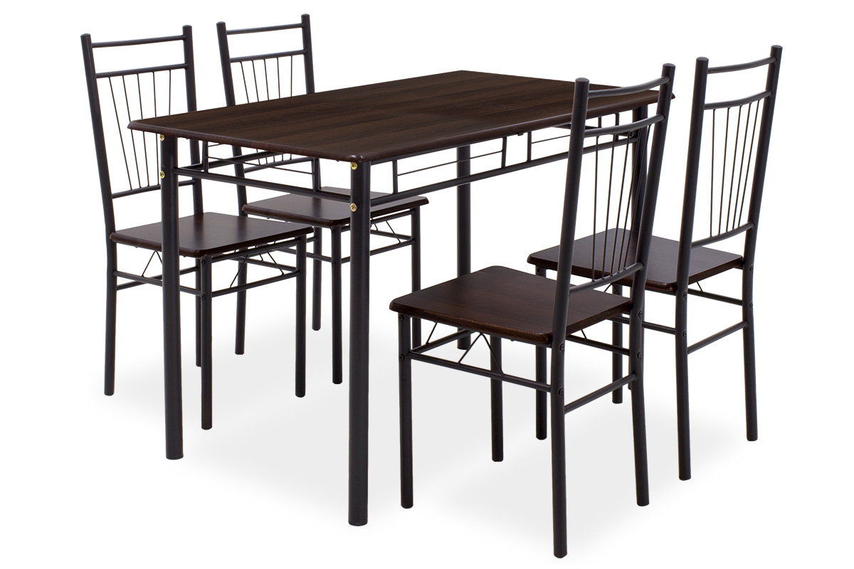 Tραπεζαρία Roza σετ 5τμχ χρώμα σκούρο καρυδί – πόδια μαύρο ματ 120x70x75εκ