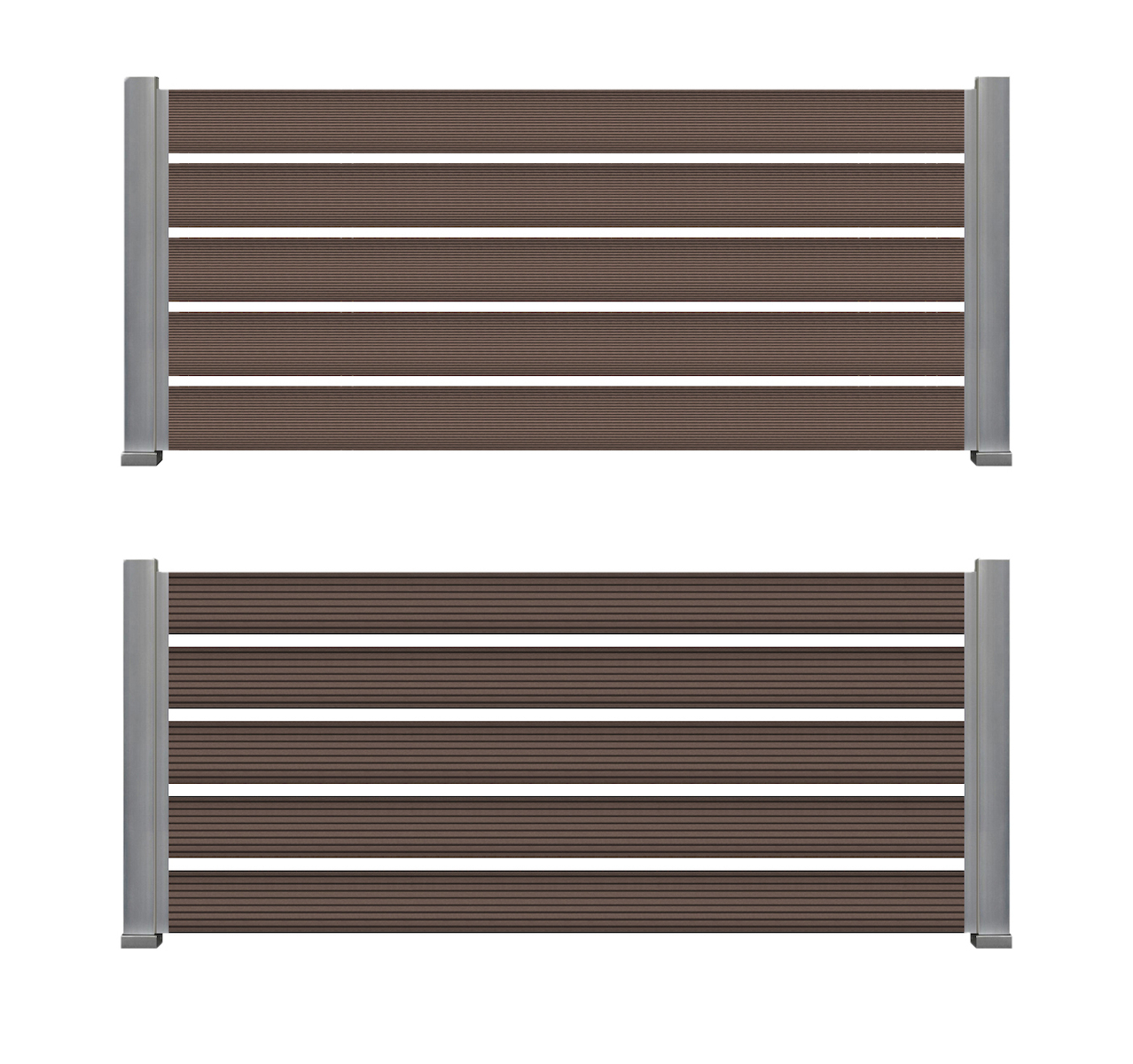 Συνθετικό Deck WPC περίφραξης εξωτερικού χώρου που αποτελείται από 55% ξύλο και 35% HDPE και 10% ρητίνες, UV σταθεροποιητές κλπ. Είναι διπλής όψης με στενό χτένι στη μία όψη και φαρδύ στην άλλη. Η περίφραξη με WPC έχει προσιτή τιμή και είναι κατάλληλη για πολλές εφαρμογές όπως περίφραξη οικοπέδου, κήπου ή πισίνας, εξωτερική περίφραξη, επένδυση τοίχου, φράχτη, αυλόπορτας κτλ